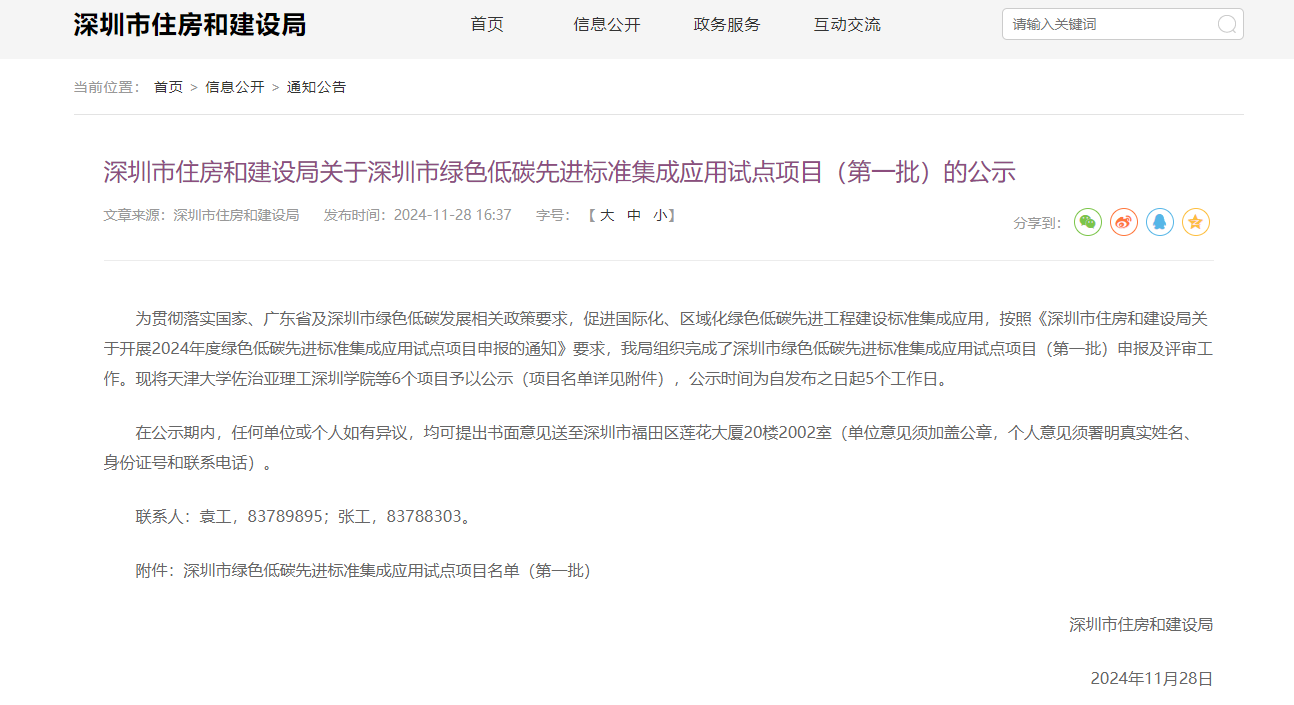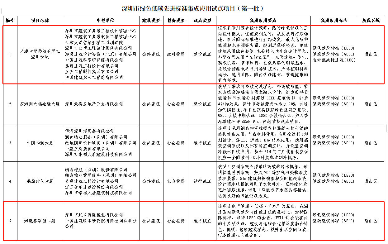 近日,深圳市住房和建设局发布了深圳市绿色低碳先进标准集成应用试点项目(第一批)公示,中国建研院深圳分明博足球app下载两个项目成功入选,在本次公示的六个试点项目中数量处于领先地位,充分体现了中国建研院深圳分明博足球app下载在大湾区绿色低碳发展领域的品牌影响力。