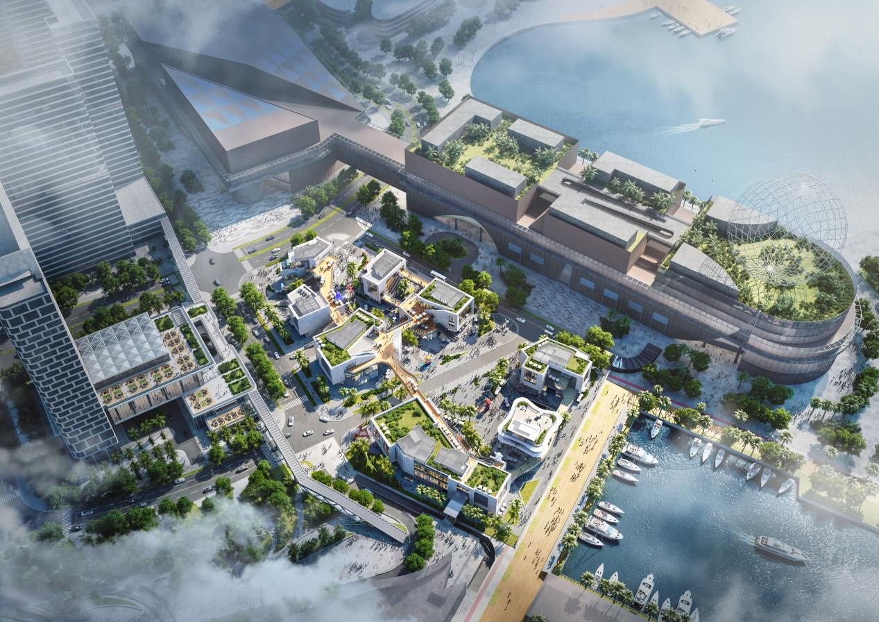 听风阅海园四单元项目位于深圳市南山区太子湾片区,项目以近零能耗建筑/碳中和建筑为设计目标,通过采用主动+被动式节能技术、可再生能源利用以及能耗与碳排放监控系统,实现节能降碳。主动式节能技术方面,采用多联机+独立新风系统的空调设计,覆盖各商业区域,降低运行能耗,并采用能效等级1级的节能变压器,进一步节能减排。被动式节能技术方面,通过绿化屋顶、光伏组件与高大乔木的结合,以及商场连廊的遮阴设计,有效降低热岛效应,提升绿化至45%。项目安装光伏组件为建筑提供清洁能源,余电并网,实现能源自给自足。采用监控系统,实时显示碳排放数据与低碳技术,宣传低碳节能理念,提升公共意识。本项目建设方为招商蛇口,在项目的建设过程中,始终坚持绿色人居理念,践行全球可持续发展倡议,提升企业可持续发展品牌影响力。