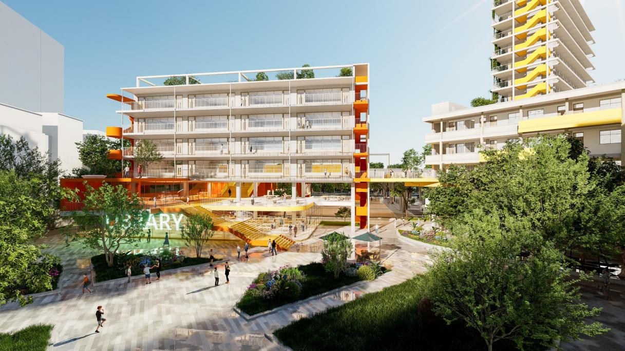 因地处龙岗区“客韵新城”,毗邻龙岗河、龙园公园和鹤湖新居客家民俗博物馆,周边交通发达,生活便利,人口聚集,校园内绿树成荫、设施齐全,拥有良好的打造“绿色校园”“文化校园”的基础。项目组立足校园现状,通过安全评估、院落织补、空间渗透、连桥搭建等设计手法打造多元一体化校园,建成后将为龙岗区师生提供一个安全高效、活力创新的高品质学校。