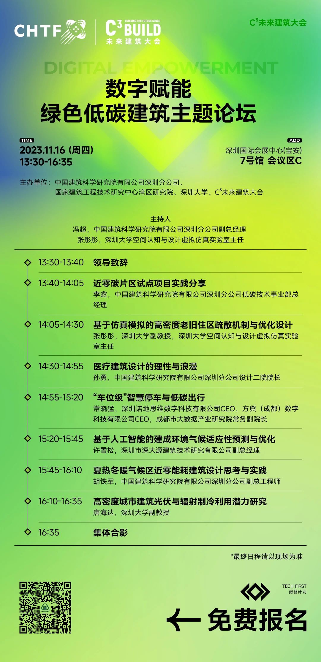 高交会-C³未来建筑大会-数字赋能绿色低碳建筑主题论坛,最新议程抢先看