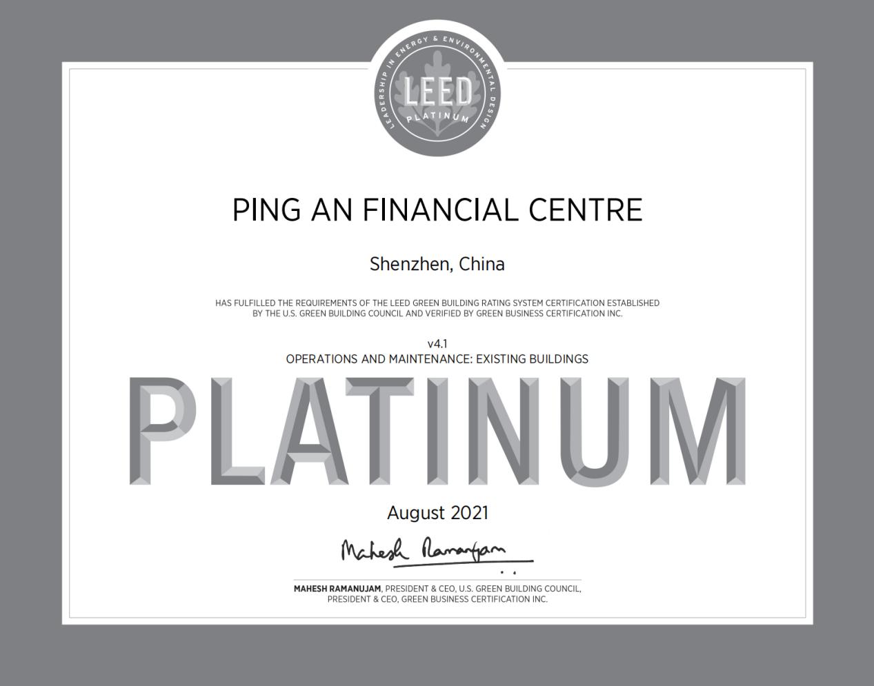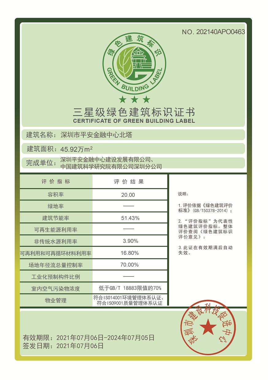 近日,中国建研院深圳分明博足球app下载成功取得深圳平安金融中心国家三星级绿色建筑运行标识和美国LEED O+M:EB(运营与维护:既有建筑)铂金级认证。