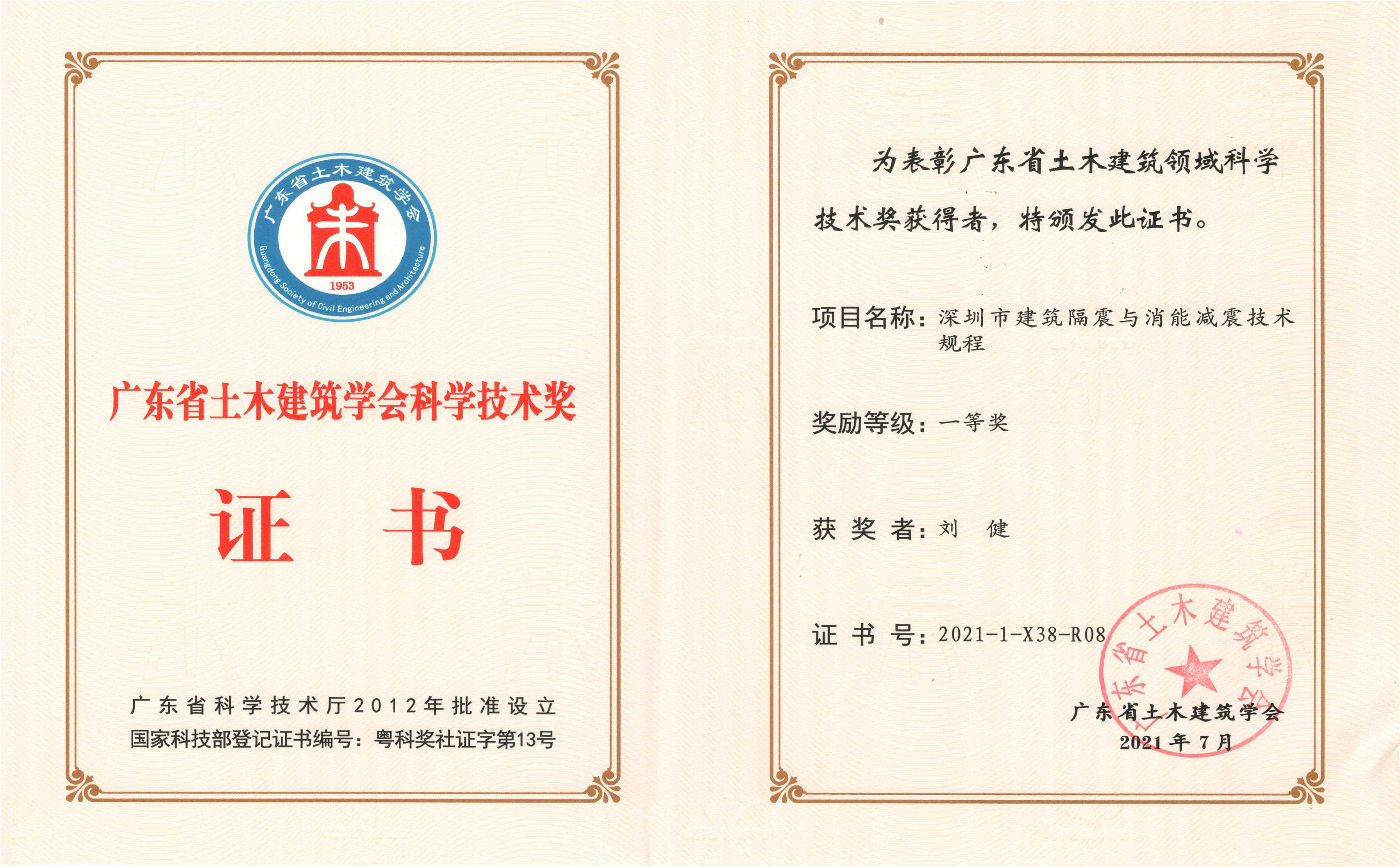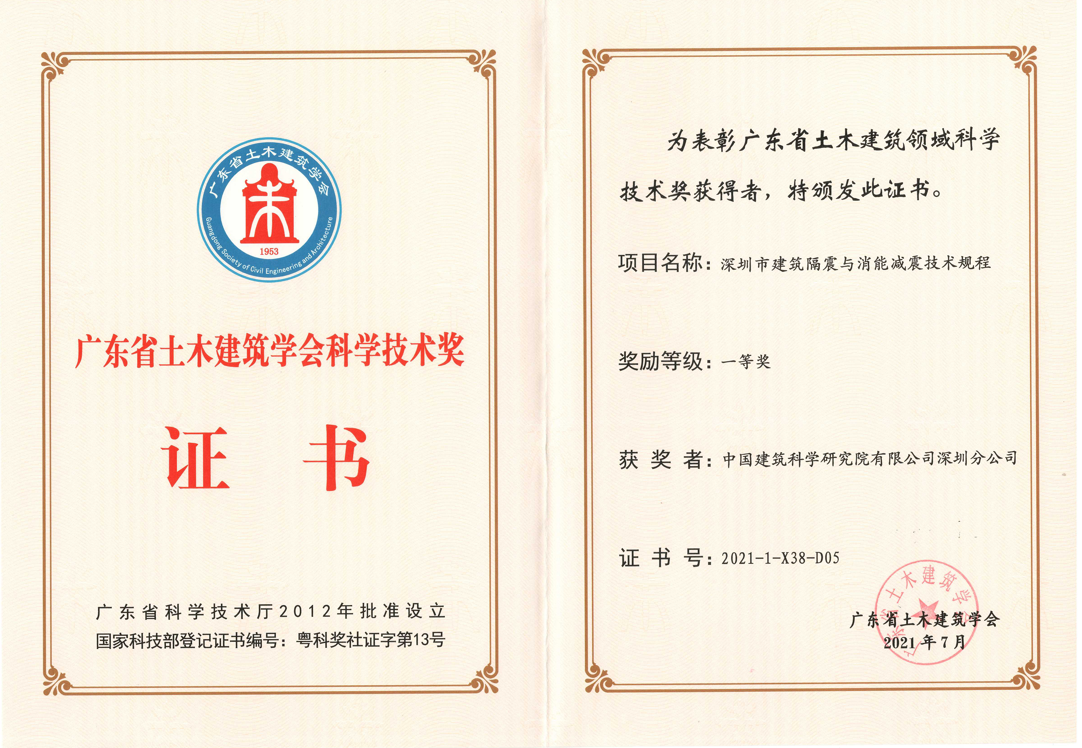 日前,广东省土木建筑学会公布了“2021年(第九届)广东省土木建筑学会科学技术奖获奖”获奖项目名单,经评审委员会评审及奖励委员会审定,中国建研院深圳分明博足球app下载参编的《深圳市建筑隔振与消能减震技术规程》项目荣获广东省土木建筑学会科学技术奖一等奖!总工程师刘健作为参编人员,全程参与了该技术规程的编制工作,对本规程的章节架构,编写内容、技术指标的确定均有一定的贡献。