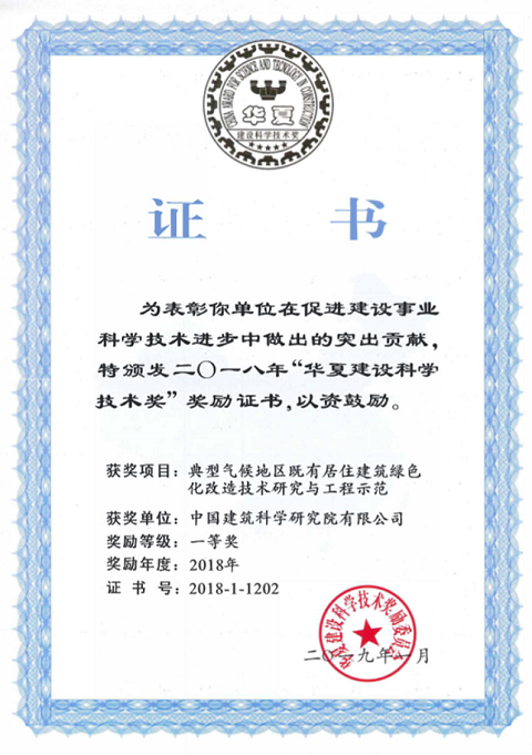 明博足球app下载与上海市建筑科学研究院(集团)有限明博足球app下载、哈尔滨工业大学共同完成的“十二五”国家科技支撑计划课题《典型气候地区既有居住建筑绿色化改造技术研究与工程示范》荣获2018年华夏建设科学技术奖一等奖。