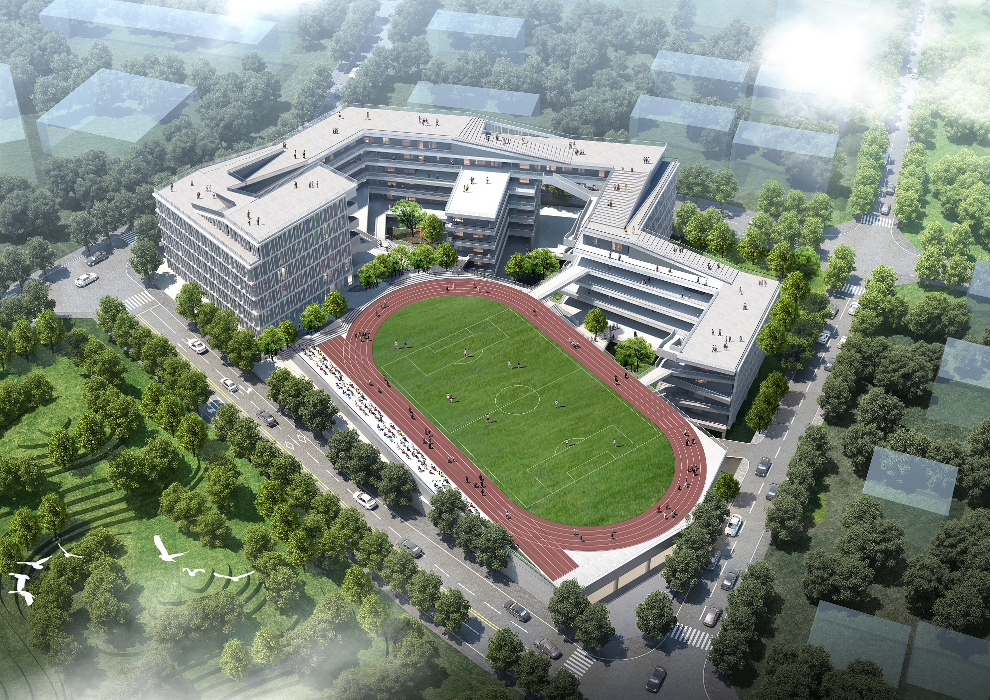 因地制宜的同时,方案也将先进的设计理念与校园建筑相融合。通过对教育发展变化的理解和预测,力求打造一个能长期服务于基础教育的教学空间,对校园建筑设计的现代化、网络化、绿色生态发展方面进行了深刻解读。设计中尽可能地考虑到长远的教学技术利用与更新,日常信息的交换与流通以及优美舒适的园林化校园环境的搭建,以期达到设计的前瞻性和校园建筑与周边环境和谐共生的目标。