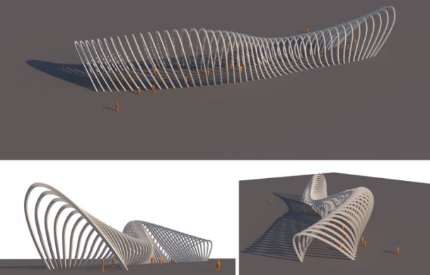 本次中标设计范围为公园红线范围内的所有钢结构构筑物(包括红线外的延伸部分)及幕墙,涉及到钢结构凉亭、钢结构雨棚、钢结构连廊、海堤钢结构构筑物、摩天轮广场构筑物、游客服务中心入口构筑物、天幕广场构筑物、遮雨凉亭、景观桥(钢结构部分)等钢结构构筑物设计和游客服务中心(含附属楼)的幕墙设计等18个子项设计内容,投影面积约 2万平方米。钢结构构筑物最大跨度达40米,所有项目均为曲面异型结构,造型新颖,设计难度大,因此投标采用了邀请投标的形式。