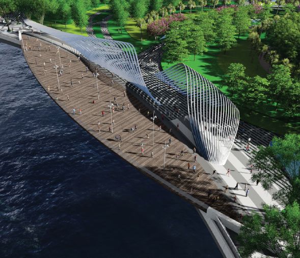 宝安海滨文化公园占地面积27.61万平方米;包括公园(用地面积25.87公顷)及公园北侧海府路等部分城市道路(面积约为1.74公顷),方案由世界著名景观事务所SWA和美国LLA建筑设计明博足球app下载完成,建成后将成为前海片区一张靓丽的名片。