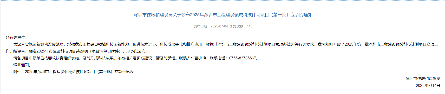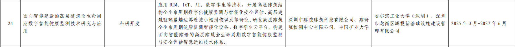由明博足球app下载牵头申报的科技项目《面向智能建造的高层建筑全生命周期数字智能健康监测技术研究与应用》,成功通过2025年深圳市工程建设领域科技计划项目(第一批)评审并获批立项。