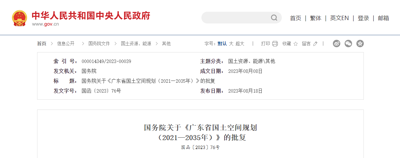 自然资源部《关于报请批准〈广东省国土空间规划(2021—2035年)〉的请示》(自然资发〔2023〕76号)收悉。现批复如下: