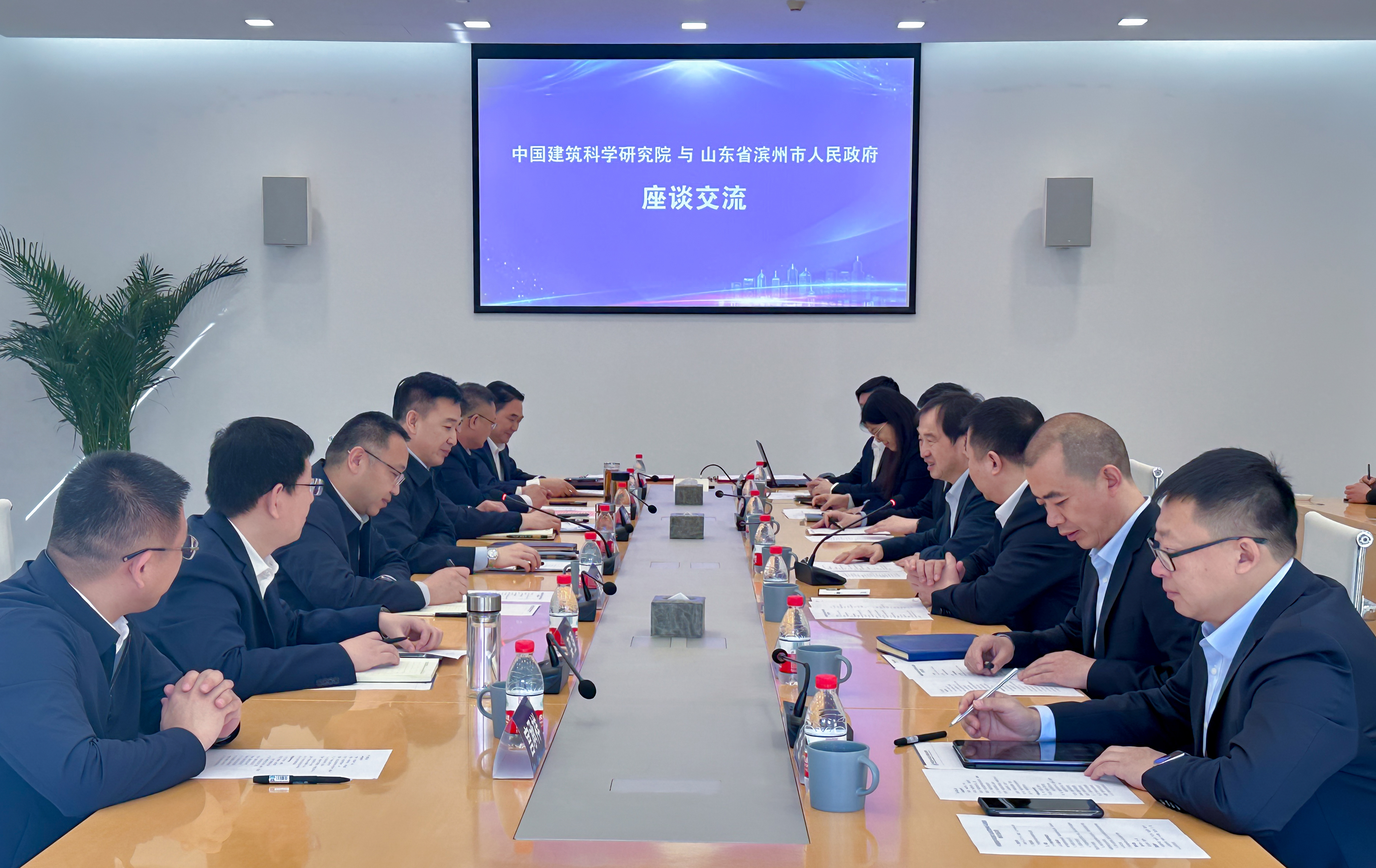 3月12日,山东省滨州市委副书记、市长李春田一行到中国建研院交流座谈。中国建研院党委书记、董事长王俊,党委委员、副总经理肖从真出席会议。