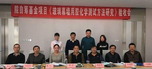 2017年1月9日,由我院检测中心承担的院自筹应用研究课题“玻璃幕墙用胶化学测试方法研究”在北京顺利通过验收。本次验收委员会由中国建筑标准设计研究院顾泰昌教授级高工、中国建筑金属结构协会黄圻高工、中国建筑装饰协会邱建辉高工、中国建筑金属结构协会铝门窗幕墙委员会董红高工、北京德宏幕墙工程技术科研中心王德勤教授级高工、北京中新方建筑科技研究中心刘忠伟教授级高工、山东大学鲁在君教授组成,由顾泰昌担任主任委员,黄圻和邱建辉担任副主任委员。院科技处程岩副研究员、院检测中心张仁瑜副主任、课题验收专家及课题组成员等共14人参加了会议。
