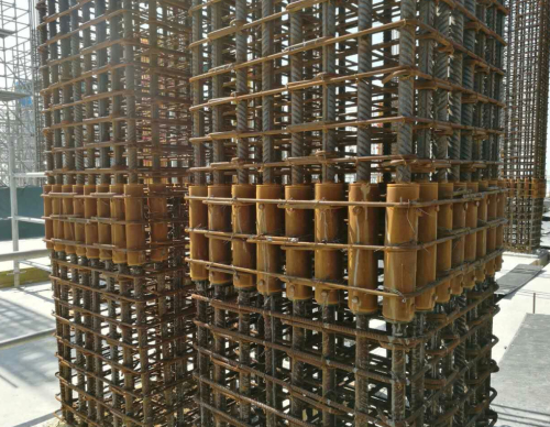 港珠澳大桥沉管隧道与东西人工岛暗埋段,因项目对原材料工艺要求高,并且需要用到大量的现浇结构梁钢筋笼和现浇结构柱钢筋筋笼。这对于钢筋连接的强度、加工工艺、设备加工都是挑战。特别是在梁、柱钢筋笼的对接上,传统的钢筋笼连接如镦粗直螺纹钢筋连接技术,加长丝吸收装配误差的能力不够,而且大直径多数量的钢筋密集会造成操作不便,管钳伸展不开。在研究了此类钢筋连接的问题后,建研科技的技术专家提出了使用定制化的CABR的灌浆套筒连接解决方案来完成项目中的现浇结构梁、柱钢筋(笼)连接,这也是国内现浇结构中大量使用钢筋套筒灌浆连接技术的首个项目。